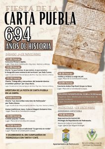 4 aniversario del privilegio de repoblación otorgado por la Ciudad de Segovia en 1331, conocido como la Carta Puebla, origen histórico del municipio. La jornada contará con diversas actividades culturales y festivas.